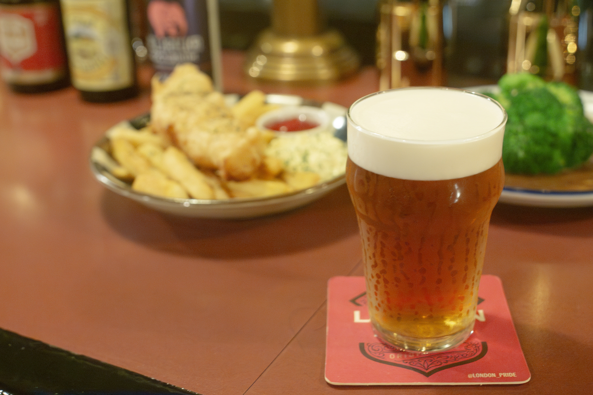 中でも定番ビールはFuller’s LONDON PRIDE。紅茶のような香りが印象的で、口当たりの軽やかなイングリッシュエールだ。今回はハーフパイント980円で。