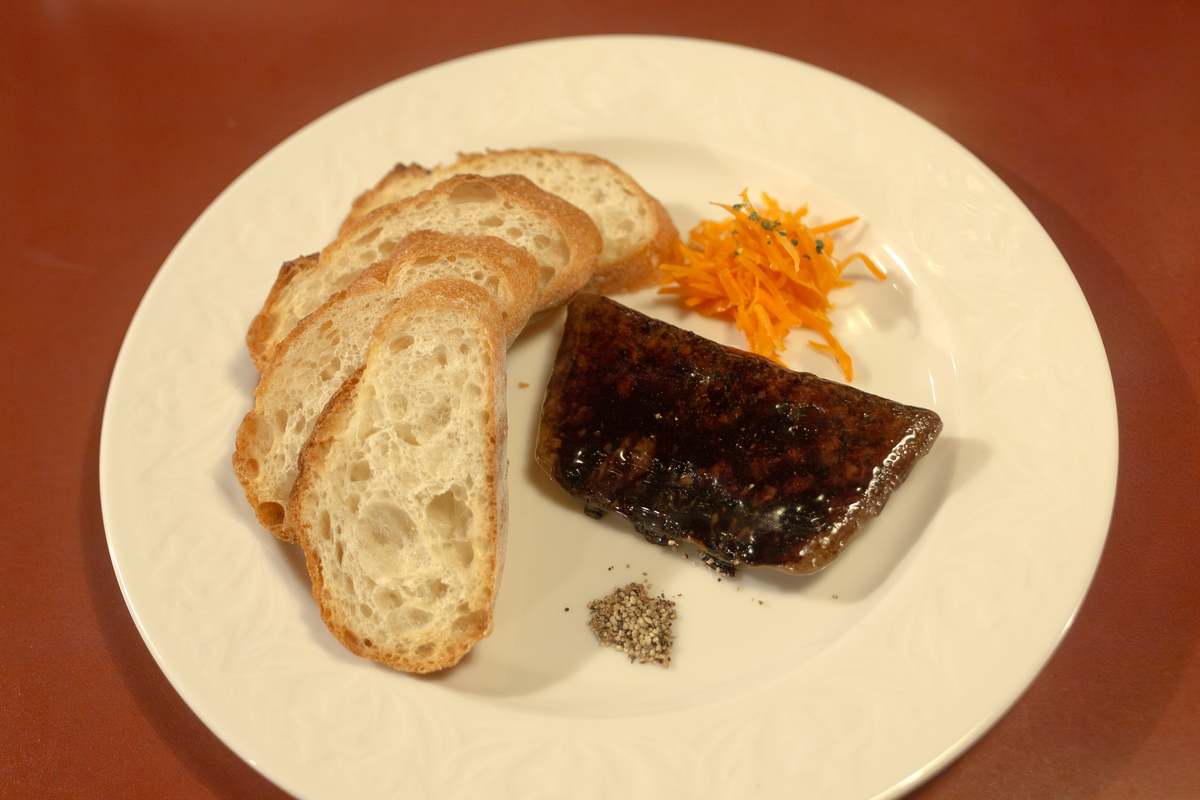 メニューの中で特に気になった料理がこちら。「白レバーのブリュレパテ」900円。ブリュレといえばスイーツのイメージだが、このメニューではレバーパテを提供する前にキャラメリゼする。鮮度の良い白レバーは、そのままでも臭みが少なく濃厚でまろやか。通常のレバーよりも食べやすいが、キャラメリゼすることで少しスイーツにも近い味わいに。レバーが苦手な女性にも人気というのも納得だ。