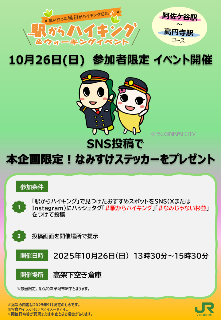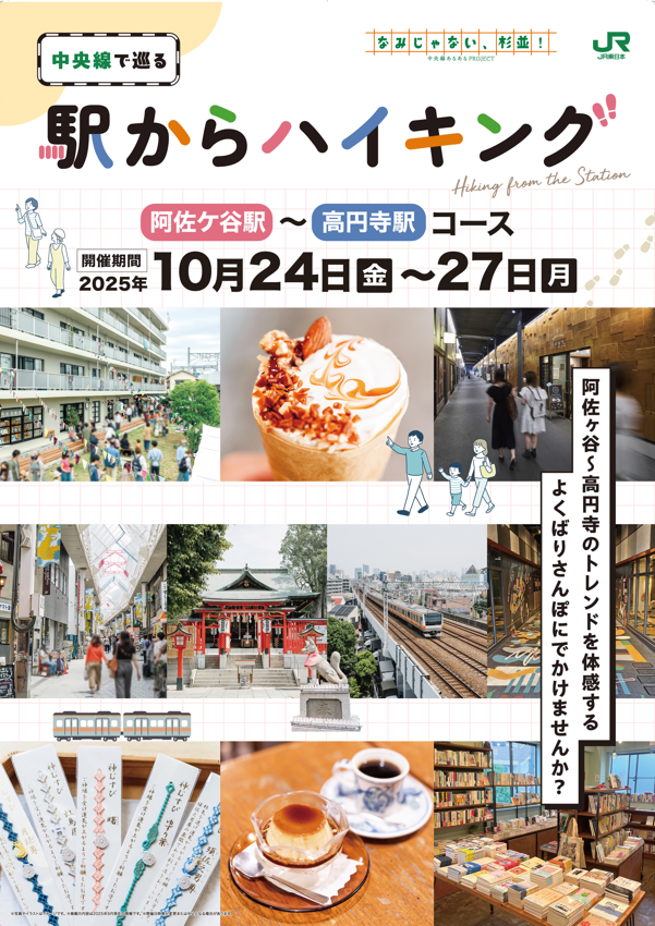 2025年10月24日(金)から10月27日(月)の期間、阿佐ケ谷駅から高円寺駅間を巡る「駅からハイキング \定番からトレンドまで堪能/阿佐ヶ谷・高円寺1日満喫さんぽ」が開催されます。