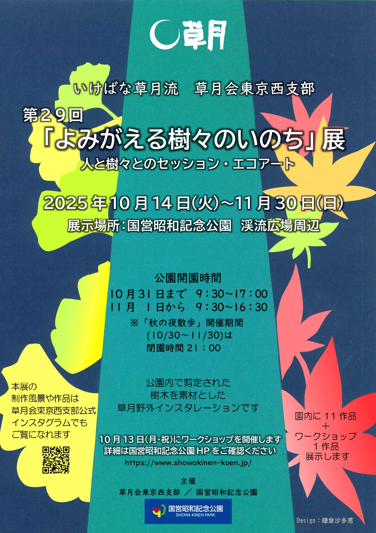 2025年10月14日(火)から11月30日(日)の期間、立川駅から徒歩10分の場所に位置する国営昭和記念公園 渓流広場周辺にて、いけばな草月流の東京西支部野外インスタレーションが開催されます。