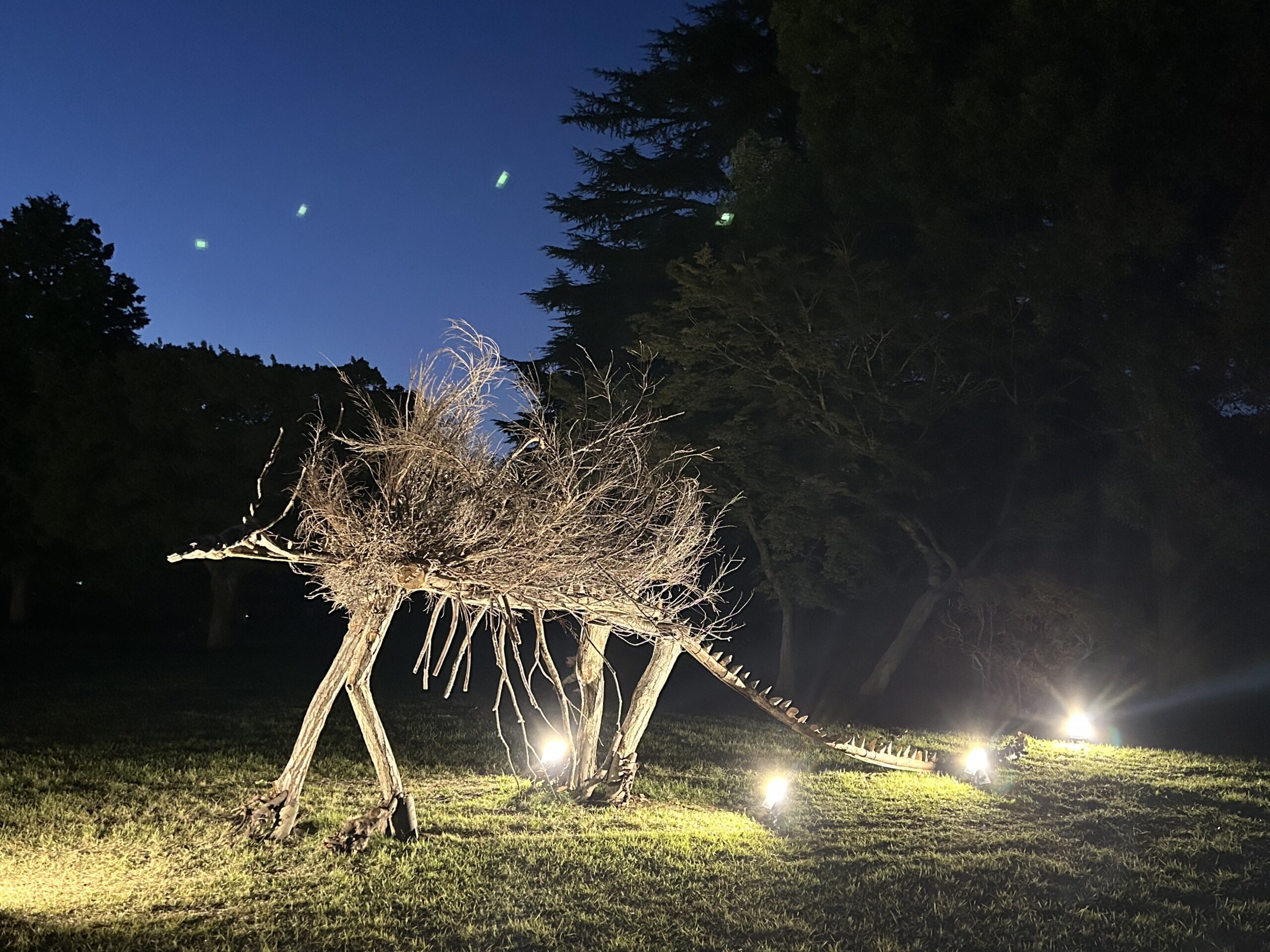 イベント期間中の2025年10月30日(木)からは、公園のライトアップイベント「秋の夜散歩2025」とコラボレーションし、全作品がライトアップされます。