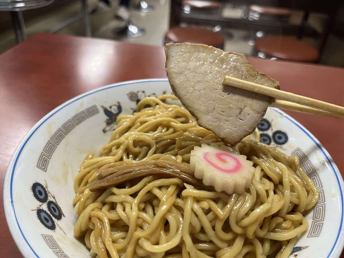 麺は創業時からの中太卵麺で、長年付き合いのあった製麺所が廃業してもレシピを引き継ぎ、別の製麺所に再現を依頼。可能な限り創業時の味に近い麺を守ってきた。チャーシューも自家製で、継ぎ足しのタレをベースに仕上げる醤油ダレは、ラーメンだけでなく夜のおつまみメニューにも活かされている。