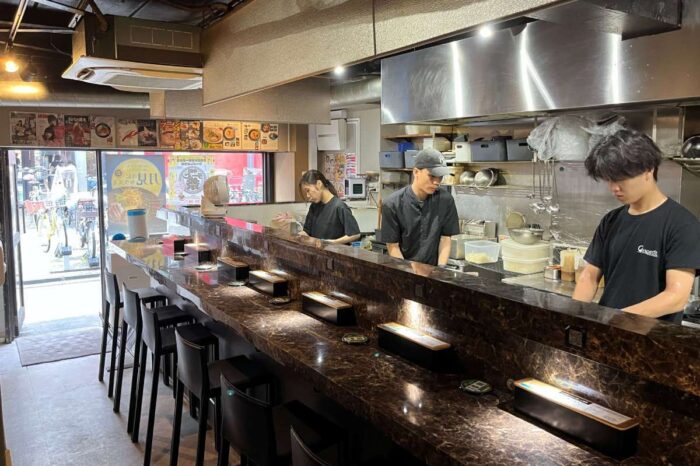 車の行き交う靖国通りから徒歩1分ほど、静かで落ち着いた環境にたたずむ店。