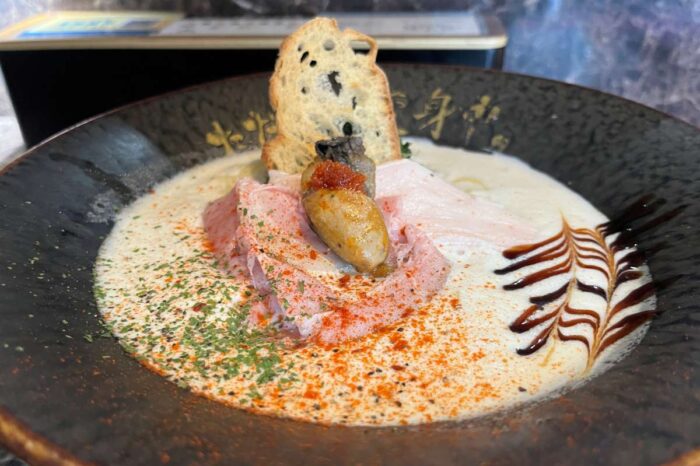 鯛と牡蠣の凝縮だしが豆乳と合体。エスプリが香る1杯