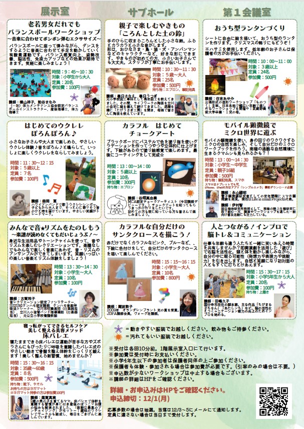 ハシゴ参加も大歓迎です!お好みのワークショップにご参加ください♪