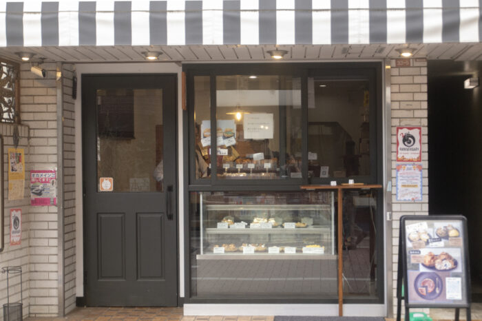 ここには以前、PÂTISSERIE TATSUYA SASAKI という店があった。オーナーシェフの佐々木さんが西八王子の本店に注力することを受け、佐々木さんのもとで菓子作りを学んだ山根克也さんが場所を引き継ぎ、2023年6月にオープンしたのがこの店だ。店頭にはTATSUYA SASAKI の焼き菓子も並び、その様子からも、師弟の絆がうかがい知れる。
