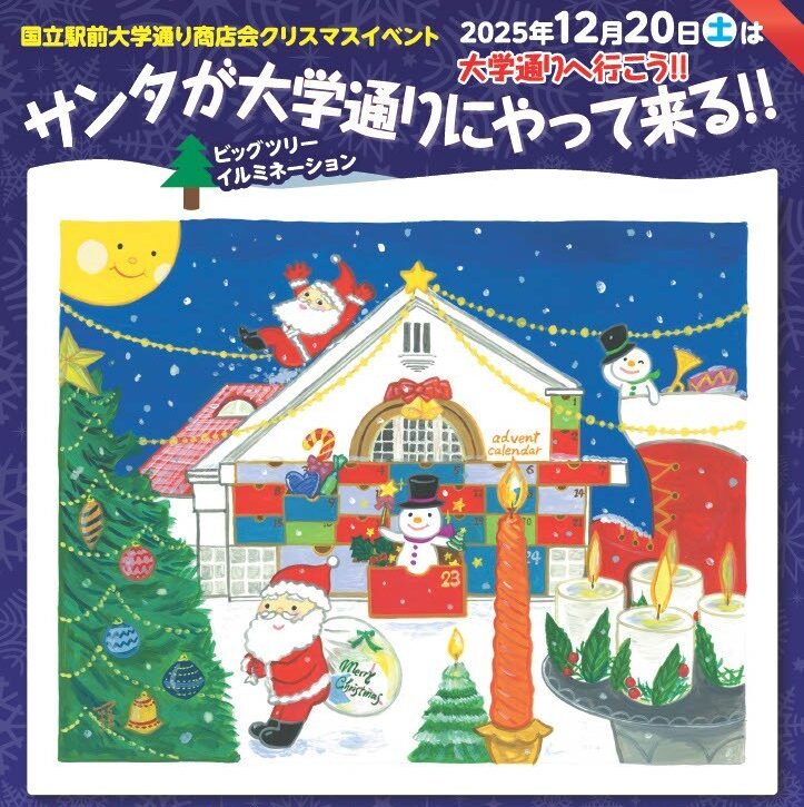 2025年12月20日(土)に、国立駅前の大学通りにて「クリスマスイベント2025」が開催されます。