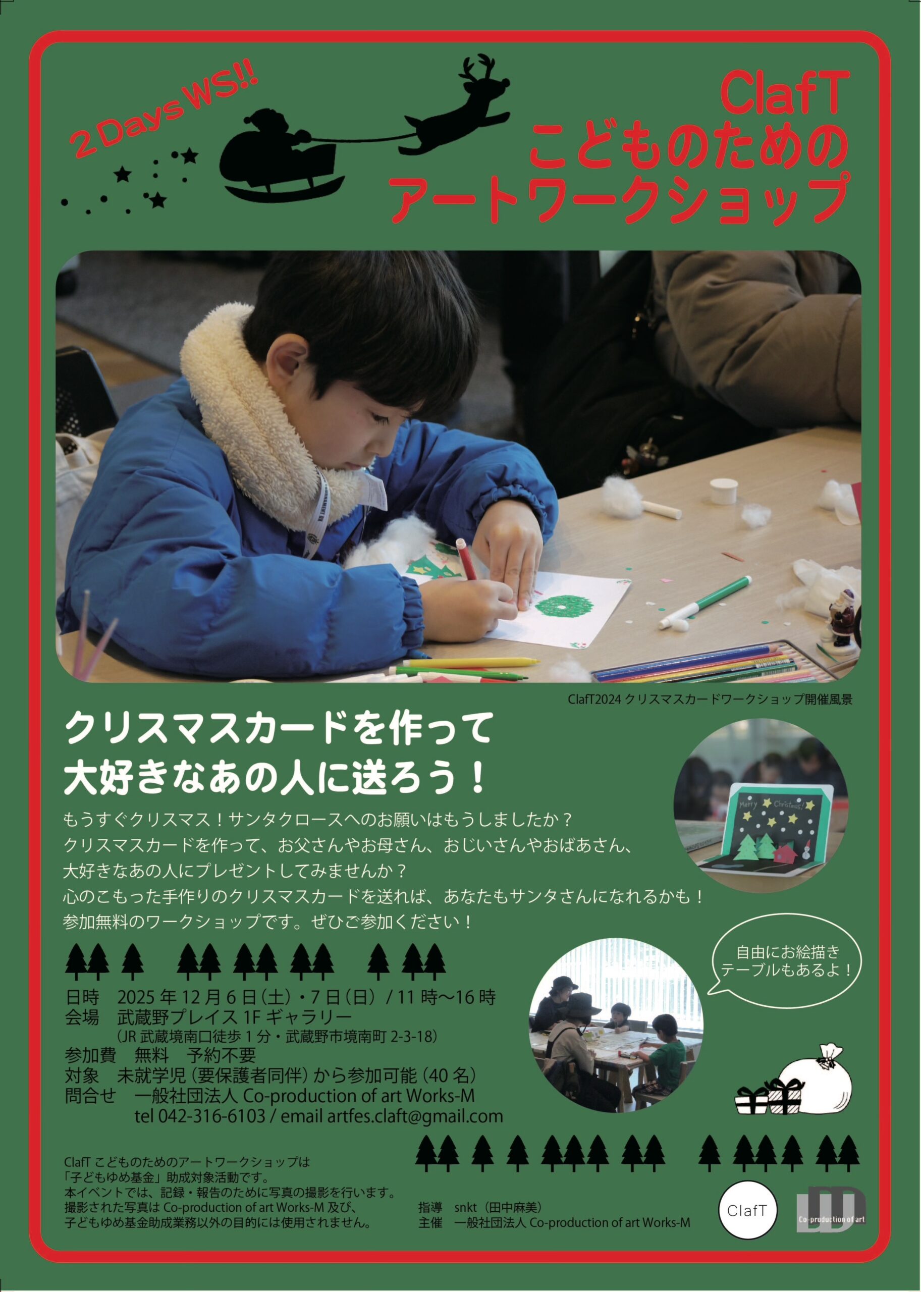 2025年12月6日(土)・7日(日)に、武蔵境駅から徒歩1分に位置する武蔵野プレイス 1F ギャラリーにて「ClafT こどものためのアートワークショップ」が開催されます。