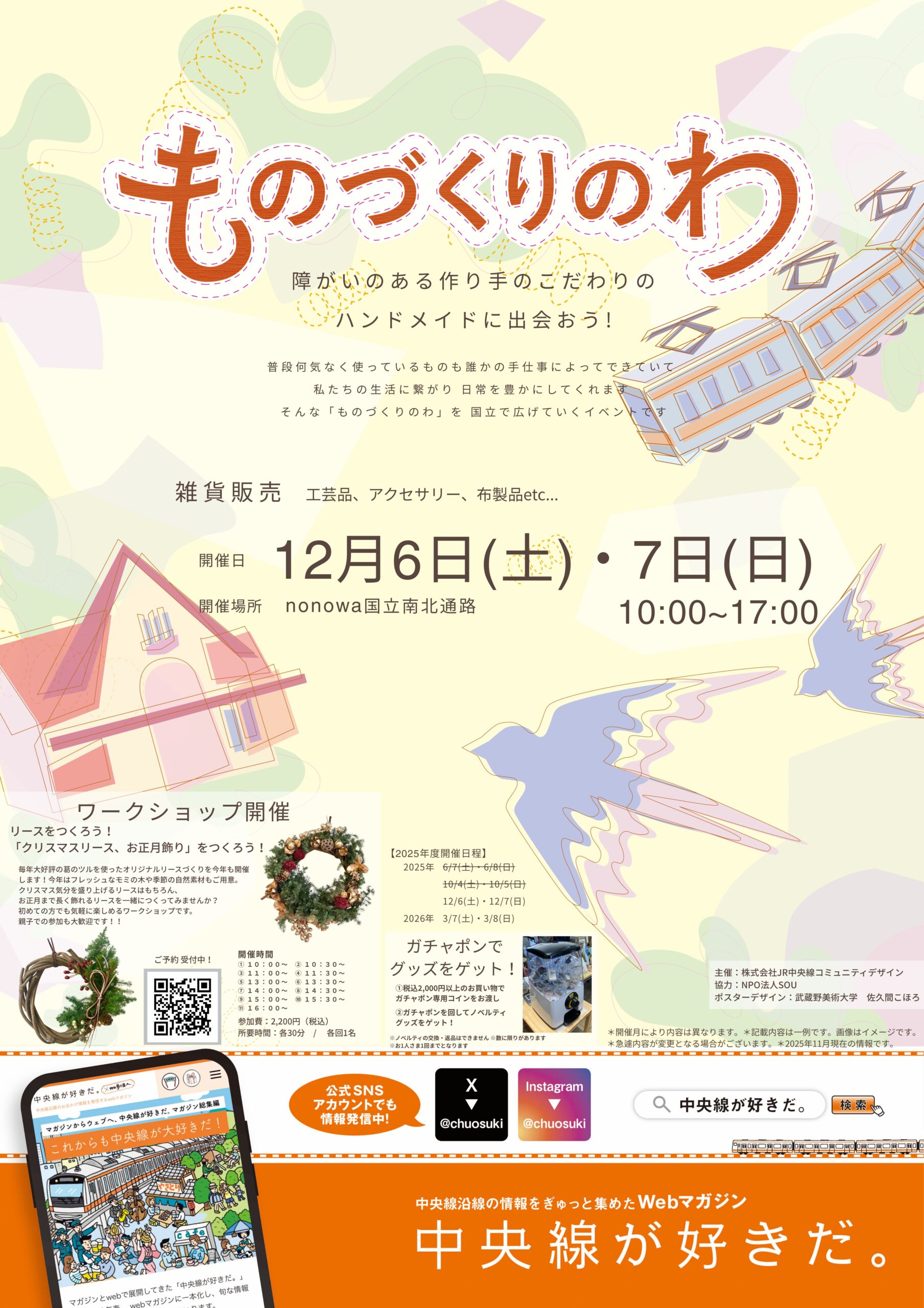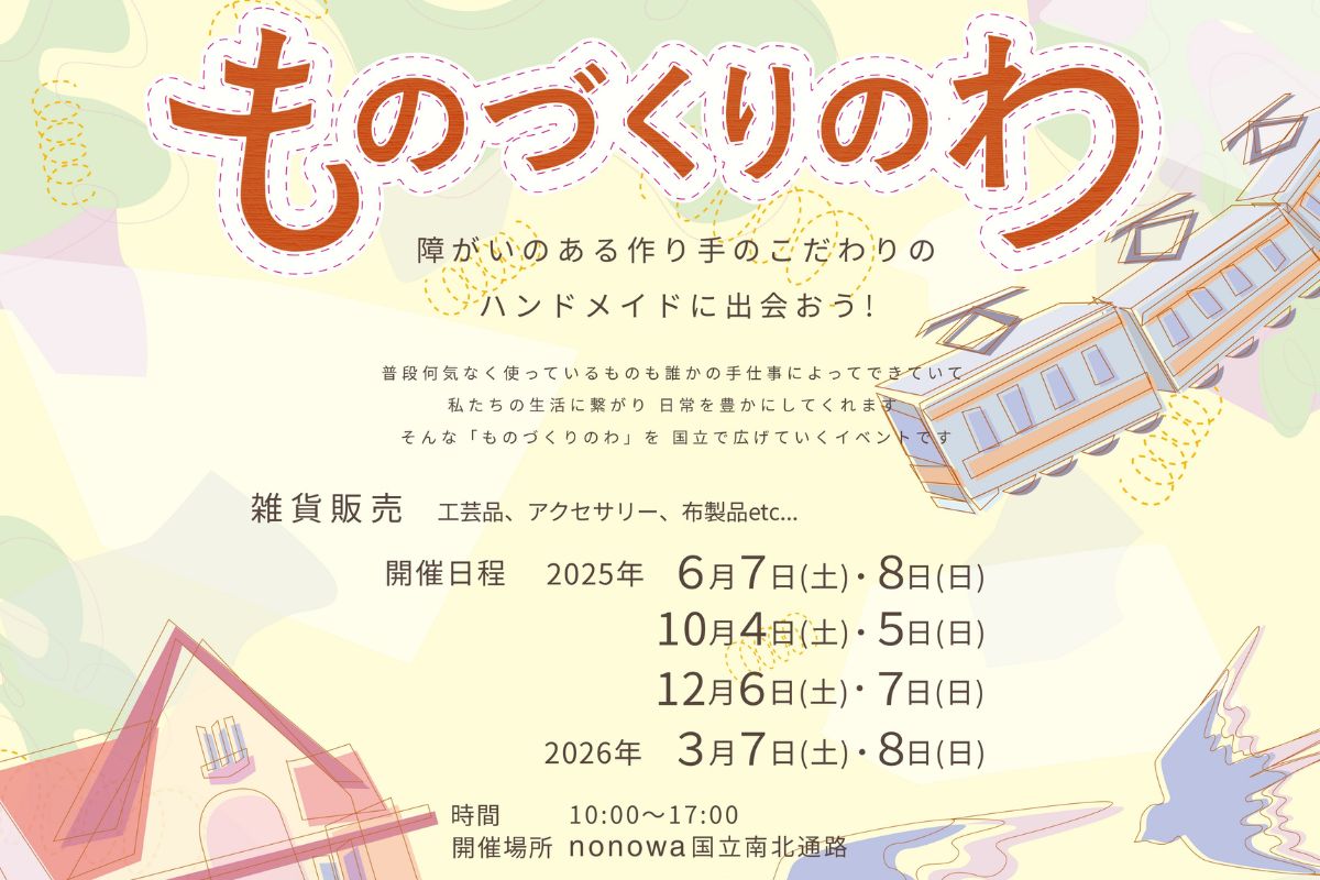 2025年12月6日(土)・7日(日)の2日間、国立駅構内のnonowa国立にて雑貨の販売、ものづくり体験ができるイベント「ものづくりのわ」を開催します。
