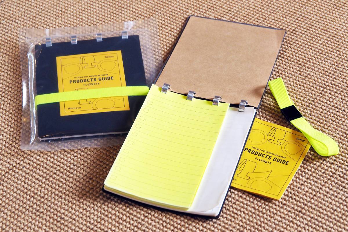リサイクルレザー使用のフレックスノート2640円は、ページの取り外しがしやすい優れもの。
