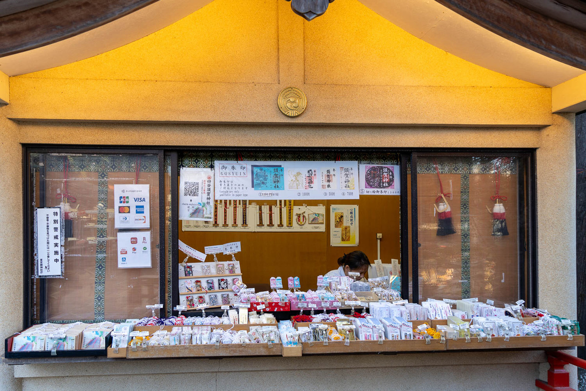 四ツ谷駅から徒歩10分ほど。新宿通りを途中で左に折れて、小学校や住宅、お寺などのある道を進んでいくと印象的な階段が目に入る。この階段は須賀神社の境内の一部で、平成28(2016)年のアニメ映画『君の名は。』に登場したことで有名になった。須賀神社は厄除けと五穀豊穣のご利益があるとされる2柱の神を祭り、冬至から節分までは期間限定で金銀融通のお守りが頒布される。これから1年間お金巡りがよくなるよう、お守りをいただいてみては?