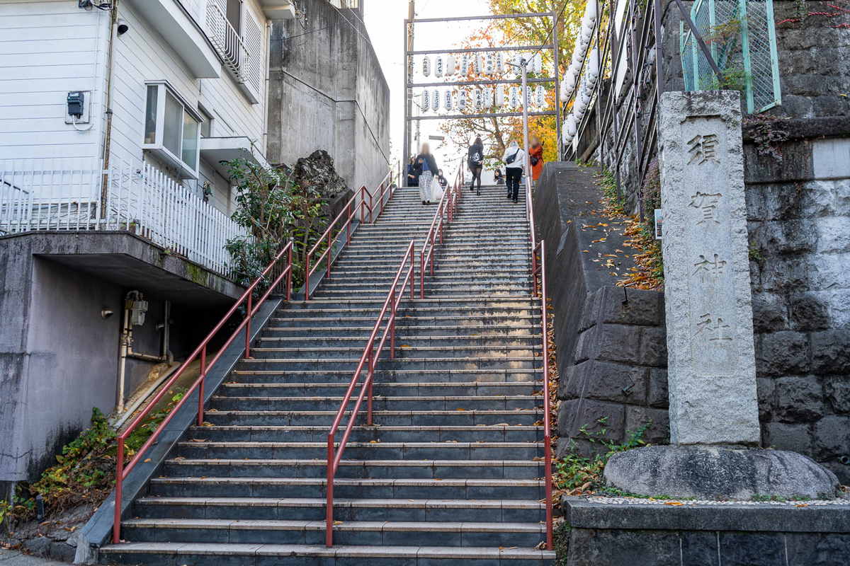 アニメに登場した階段が有名な須賀神社。期間限定で頒布される珍しい一陽来福御守