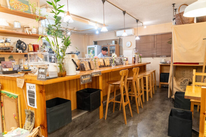 四谷の路地に2017年にオープンした自家焙煎コーヒーとプリンが看板メニューのお店。コーヒー豆は、シングルオリジン、ブレンドを合わせて常時18種類ほど用意されている。卵黄を多く使ったたまごたっプリンは、店主の妻がレシピを考案。メニューに加えたばかりの頃は、店主の住まいがあった西荻窪から中央線で運んでいたため、固めで大きく作ったものをカットして提供するようになった。このプリンに合うようにすっきりした癖のない味にブレンドされたトゥデイズコーヒーとのセットが人気。