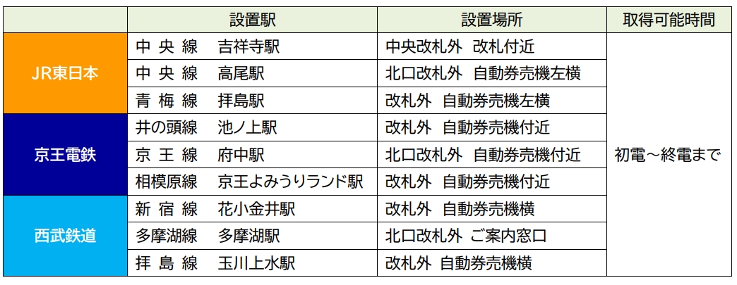 会場○JR:吉祥寺駅、高尾駅、拝島駅
