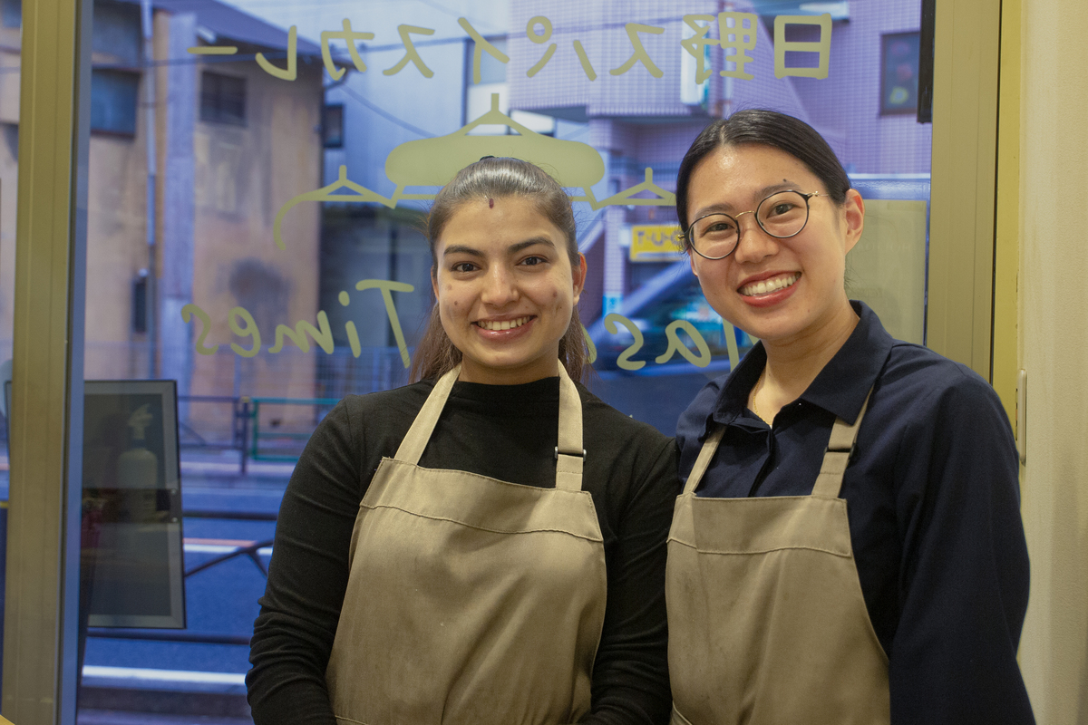 オーナーの小野さん(右)は以前、立川のクレープ店で働いており、いつかはクレープの店かカフェを出したいと考えていたそう。現在の業態とはだいぶ方向性が違うようにも思い尋ねると、実はパキスタン出身の夫やそのお母様からパキスタン料理を習い、作り始めたのがきっかけだったとか。