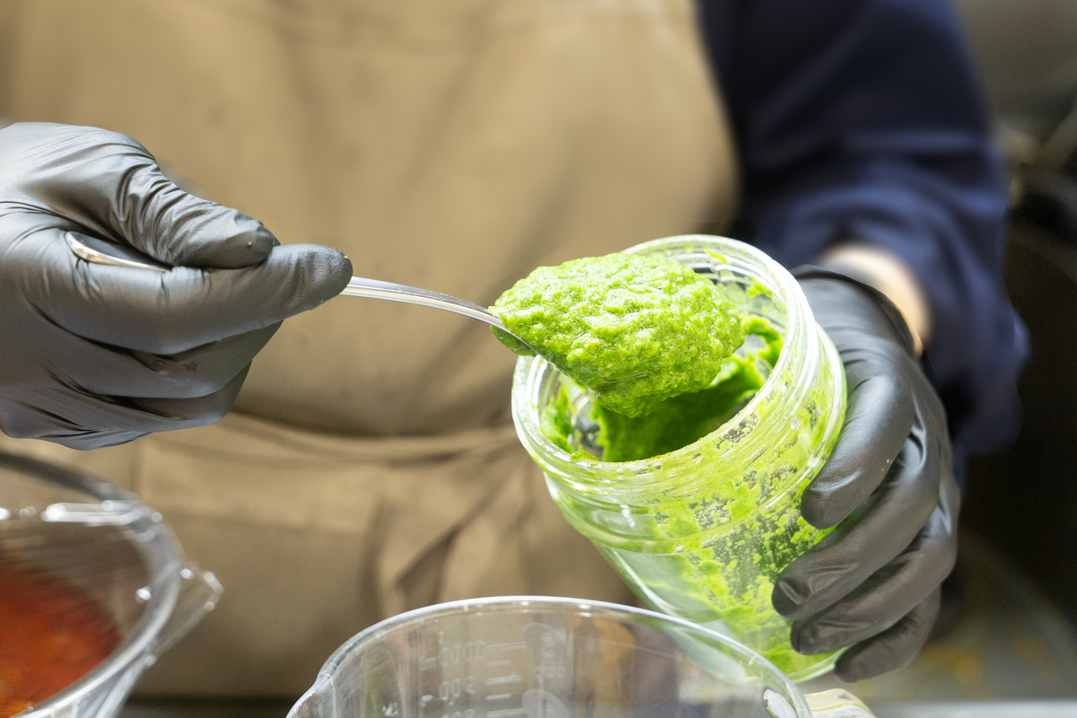 それぞれのカレーはそのままでも十分満足のいく味わいだが、トッピングでチャツネを追加するのもおすすめだ。パクチーベースのチャツネは香り高く、味変を楽しめるのもカレーならでは。パクチー好きならぜひ試してみて。