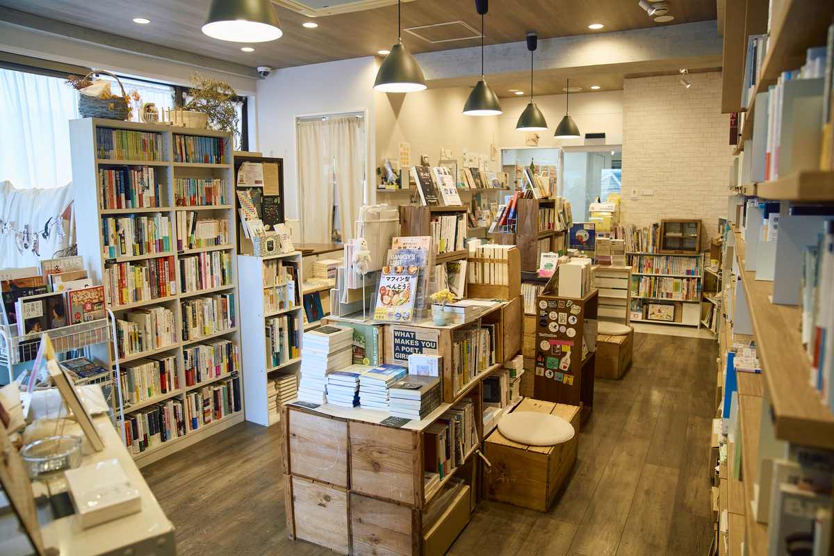 哲学、料理、絵本など、作家別ではなくジャンル別に並べ、全国の独立系出版社の刊行物やZINEも含めて約2000種の本が揃う。