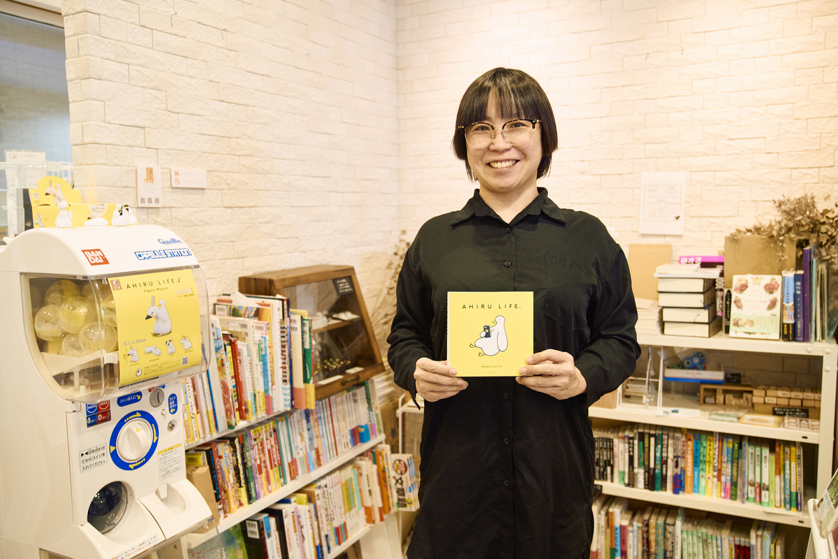 そんななか、入り口にあるアヒルのカプセルトイは、よはく舎刊行の絵本『AHIRU LIFE.』に目をつけたカプセルトイメーカーが制作したものだ。