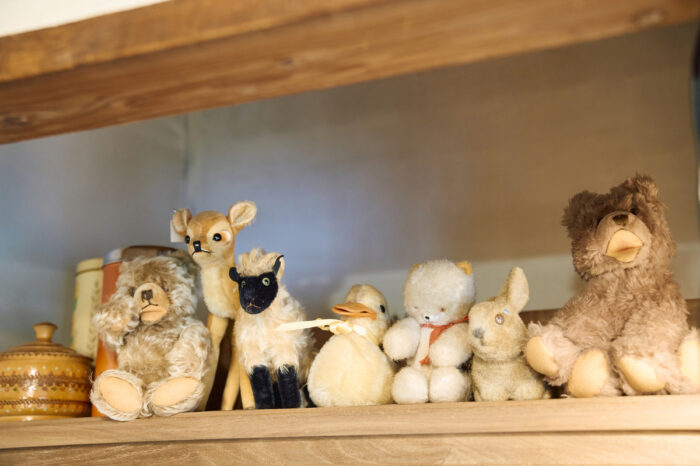 とぼけた顔のぬいぐるみのなかには、ドイツ最高級のテディベアで有名なシュタイフ製の黒ヤギもいて「一つ一つ表情が異なるなか、置いて帰れないと思ったコを連れてきました」と笑う。