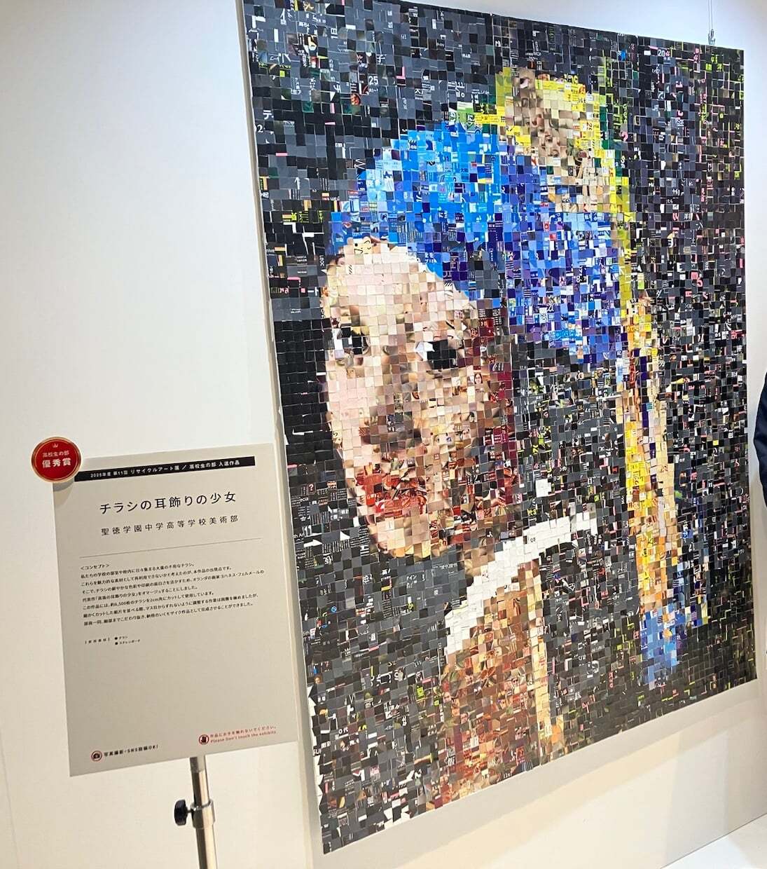 「チラシの耳飾りの少女」リサイクルアート展で受賞した作品 聖徳学園美術部