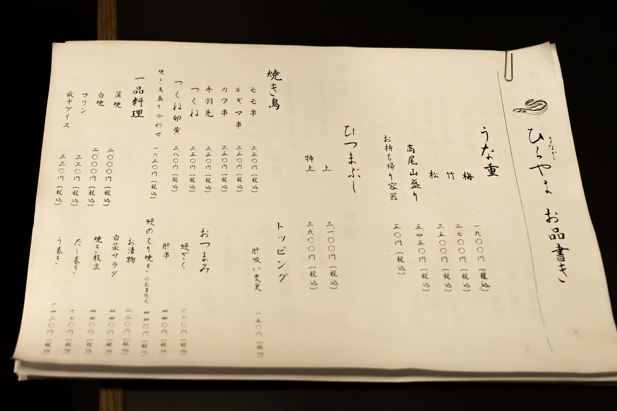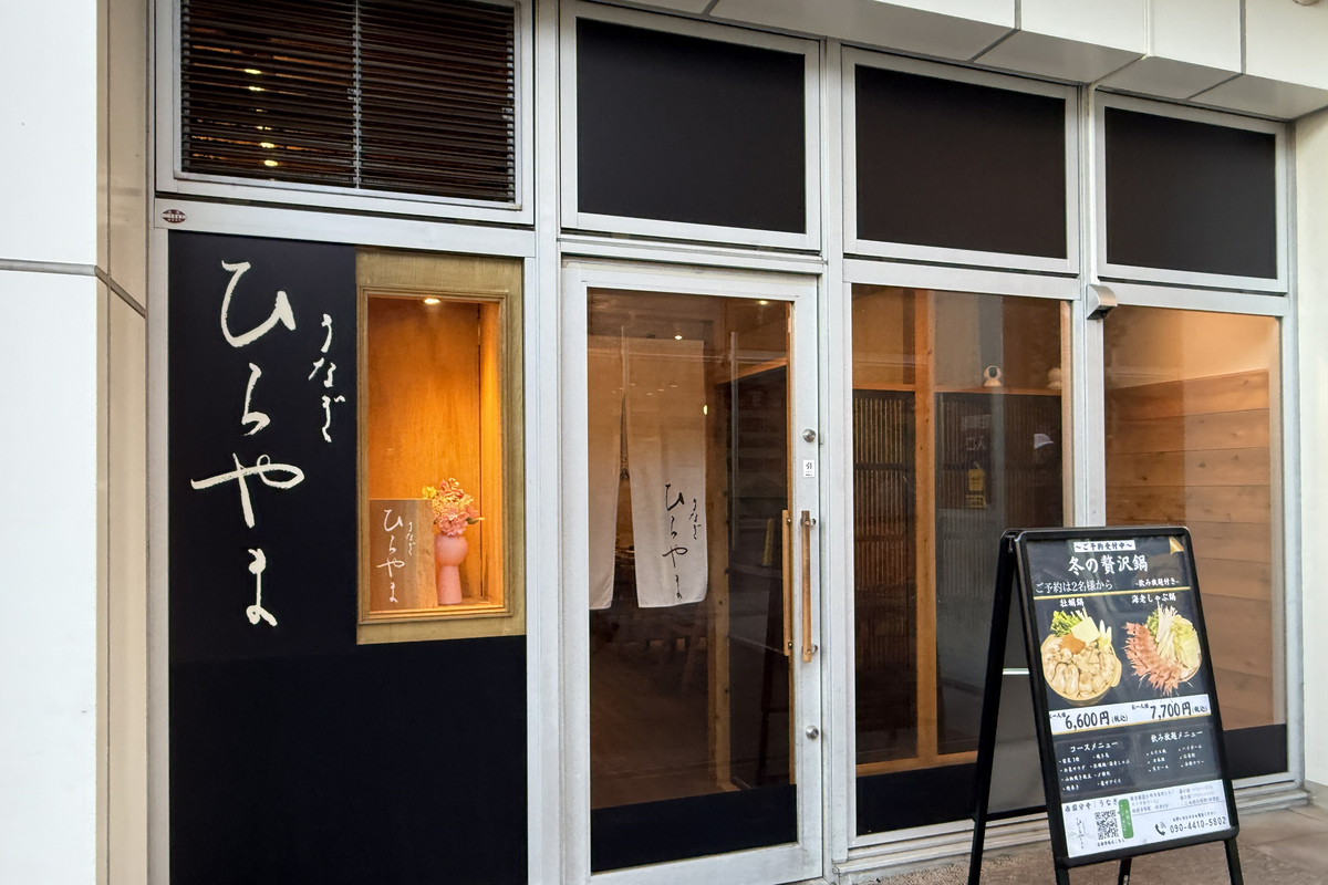 西国分寺駅の南口を出て武蔵野線の線路をくぐり、府中街道を渡るとすぐ。24階建ての大きなマンションの1階にあるのが『うなぎ ひらやま』。2024年7月にオープンした、まだ新しい店だ。店主は日本橋の名店で修業し、満を持して自ら出店したのだそう。