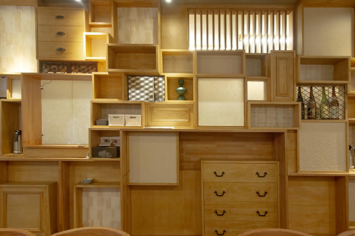 席に着くと目の前には厨房との仕切りに設えられたモダンな壁。よく見ると民芸調の家具がセンス良く配置されている。和風でありながら、古臭くならない内装は、鰻屋さんというよりおしゃれなダイニングといった雰囲気だ。