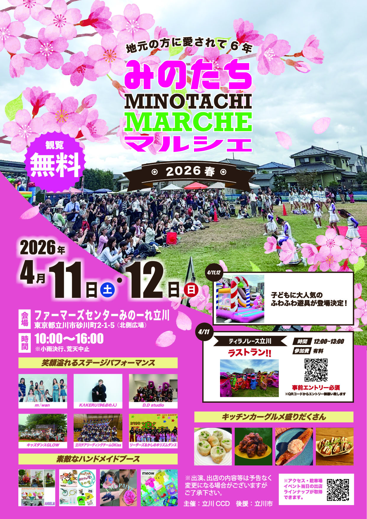 2026年4月11日(土)・12日(日)に立川駅からバスで15分のファーマーズセンターみのーれ立川北側広場にて、「みのたちマルシェ2026春」が開催されます。