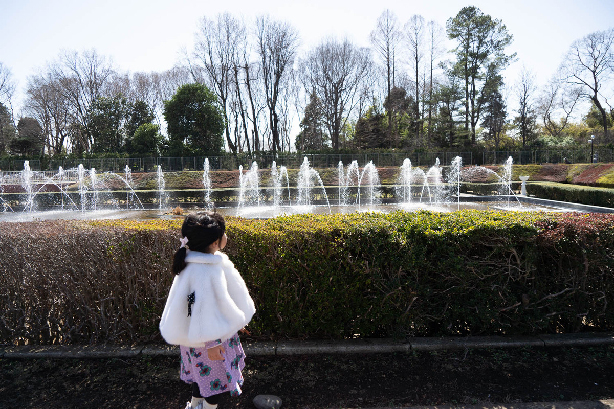 噴水の水が踊るような様子に釘付け。