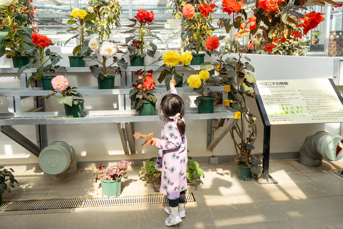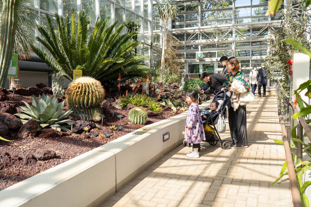 神代植物公園で栽培されている植物は、原則直接触れることはできないので注意。それでも、同じサクラやウメの花でも品種ごとに色や形が違うこと、顔より大きな葉っぱが落ちていること、おもしろい形の植物があることなど、日常生活では出合えない不思議に好奇心が育まれる。環境問題や多様性への気付きにも繋がりそうだ。大人にとってもいろいろな発見がある神代植物公園。子供たちと同じ視線の高さで園内を見回すと、また違った学びがありそう。