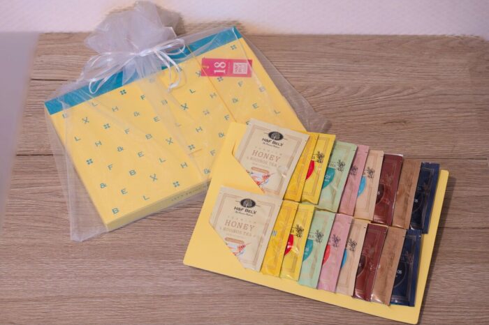 『H&F BELX』は多彩なフレーバーやブレンドでルイボスティーをより幅広く楽しむことを提案。ジャスミンやアールグレイ、バニラなどの定番から、ピーチやメロン、ライチなどのフルーツ、クリーム系などラインナップは約50種。 1種のティーバッグ5包入り450円や、9種18包のアソート2300円など、さまざまなシーンに合わせたプレゼントとして活用できる。数種類のフレーバーをセレクトしたアソートをみんなで飲み比べれば、お茶会もきっと盛り上がるだろう。