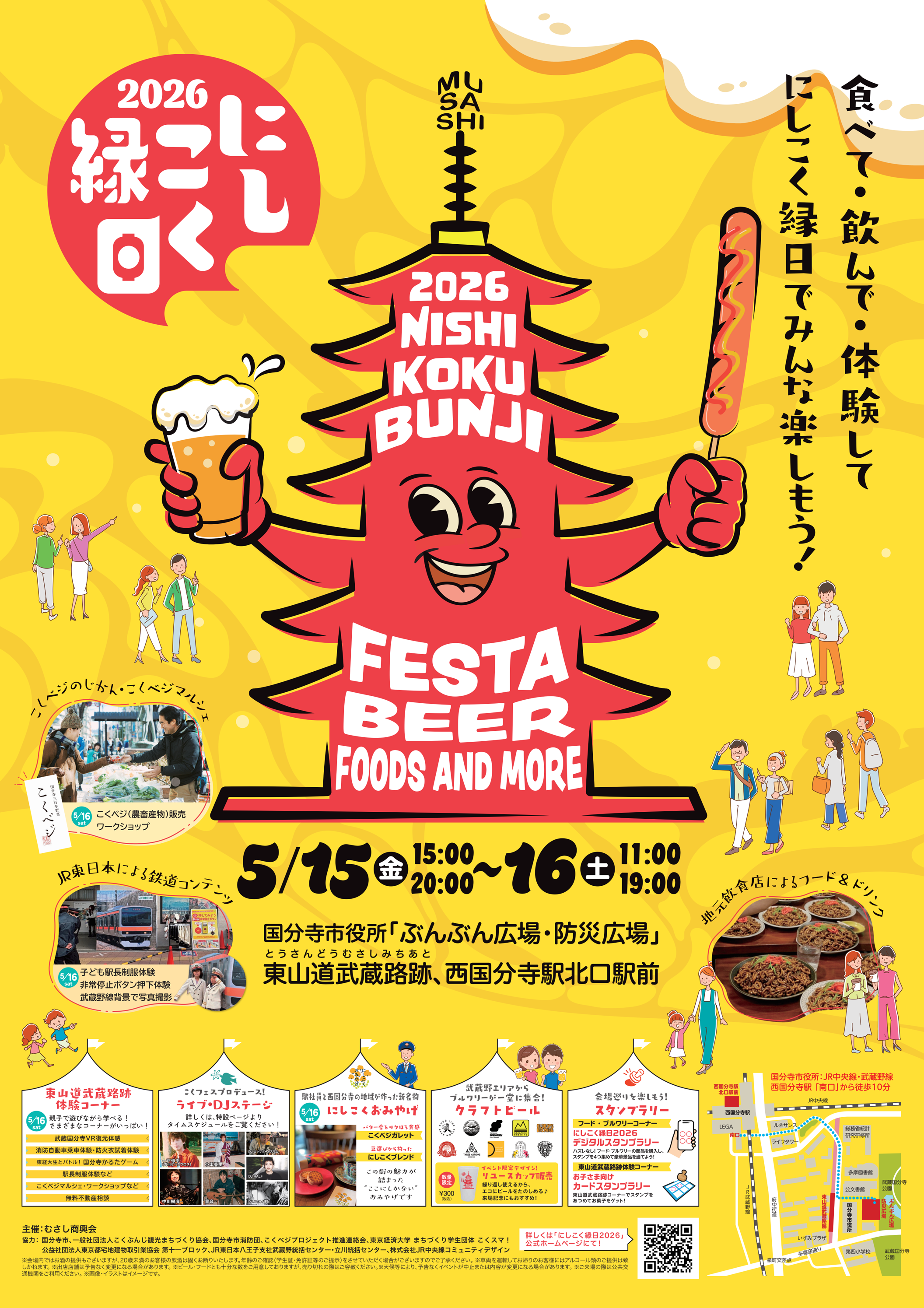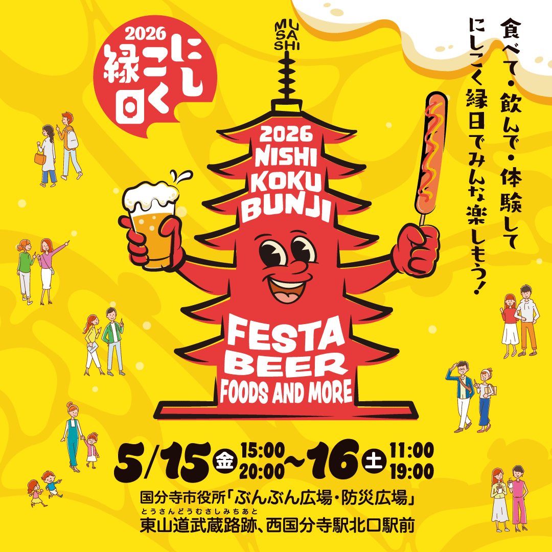 2026年5月15日(金)・16日(土)に、国分寺市役所/東山道武蔵路跡(最寄り:JR西国分寺駅)にて、「にしこく縁日2026」が開催!