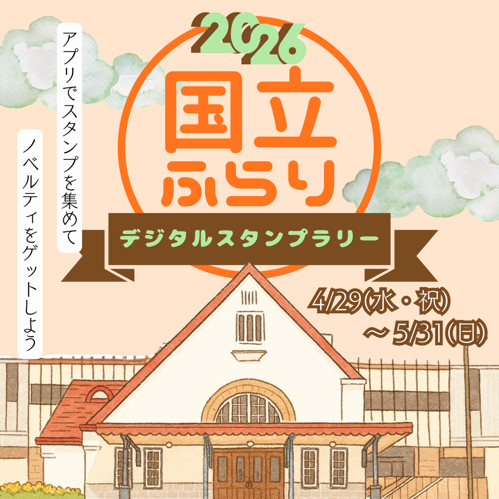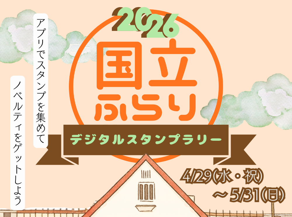 2026年4月29日(水・祝)から5月31日(日)の期間に、国立エリア・谷保・矢川エリアで「国立ふらりスタンプラリー」を開催します。