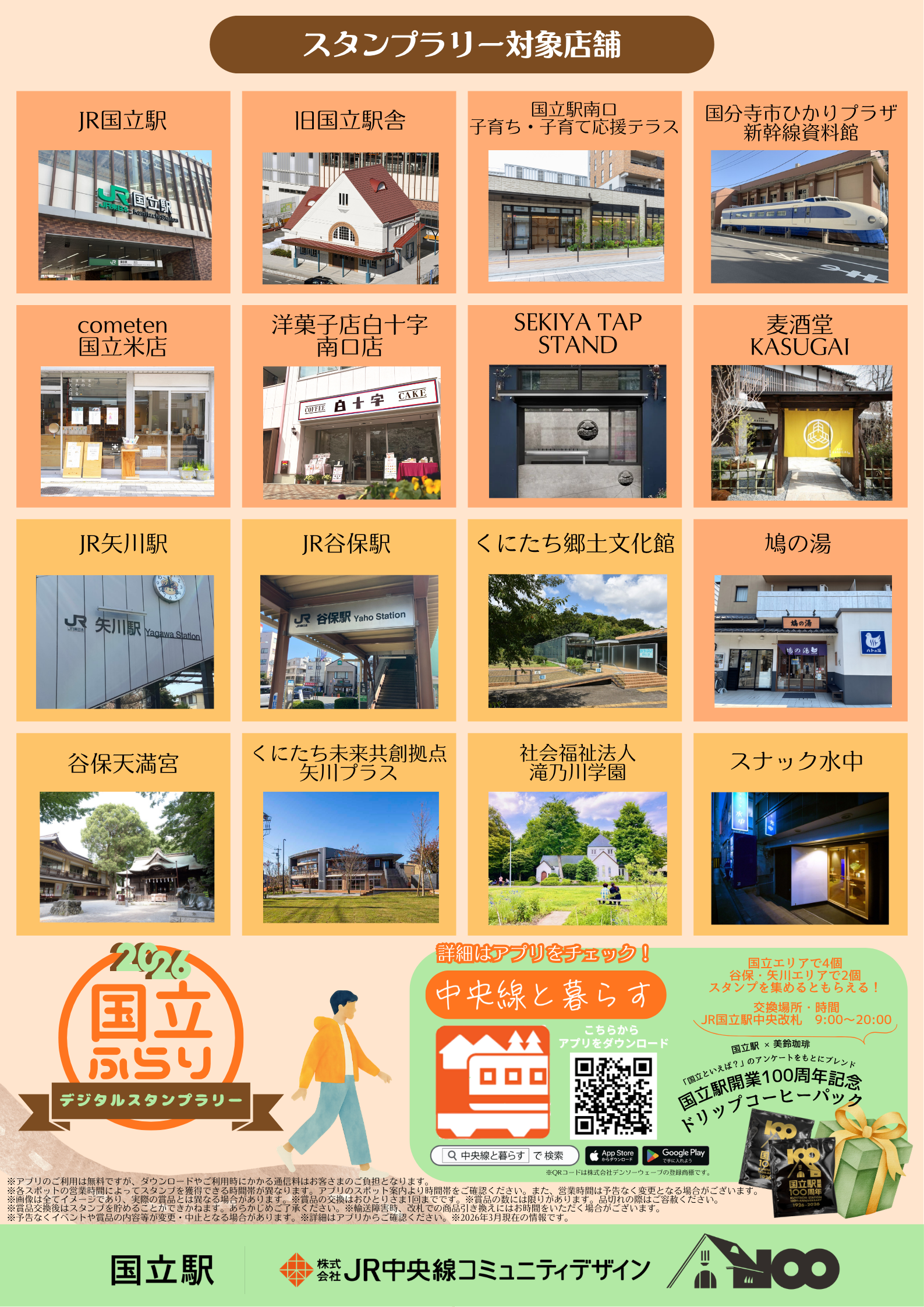 会場○国立市内JR各駅・周辺施設・店舗ほか(景品の交換はJR国立駅のみ)