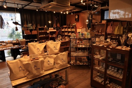 居心地の良いカフェの横に併設するのは、古道具や雑貨のセレクトショップのお店「四歩(しっぽ)」。お食事やお茶をしながら、お買い物もお楽しみいただけます。